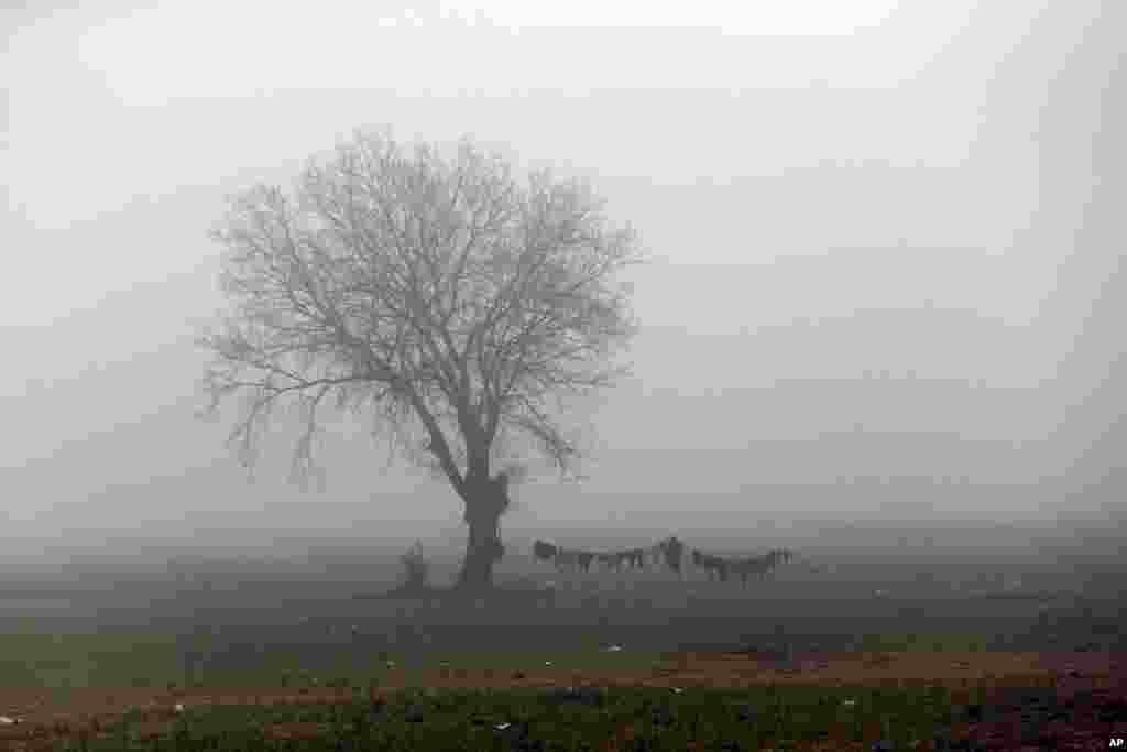 អាប់នាពេលព្រឹកព្រលឹមបានគ្របដណ្តប់លើជំរុំបណ្តោះអាសន្នឯភាគខាងជើងព្រំប្រទល់ប្រទេសក្រិក ភូមិ Idomeni។