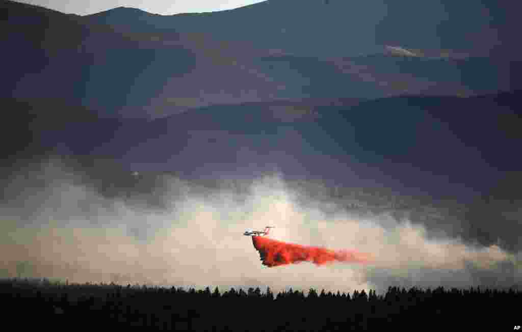 យន្តហោះមួយទម្លាក់សារធាតុគីមីពីលើភ្លើងឆេះព្រៃ Cold Springs Fire នៅជិតក្រុង Nederland រដ្ឋ Colorado កាលពីថ្ងៃទី១០ ខែកក្កដា ឆ្នាំ២០១៦។