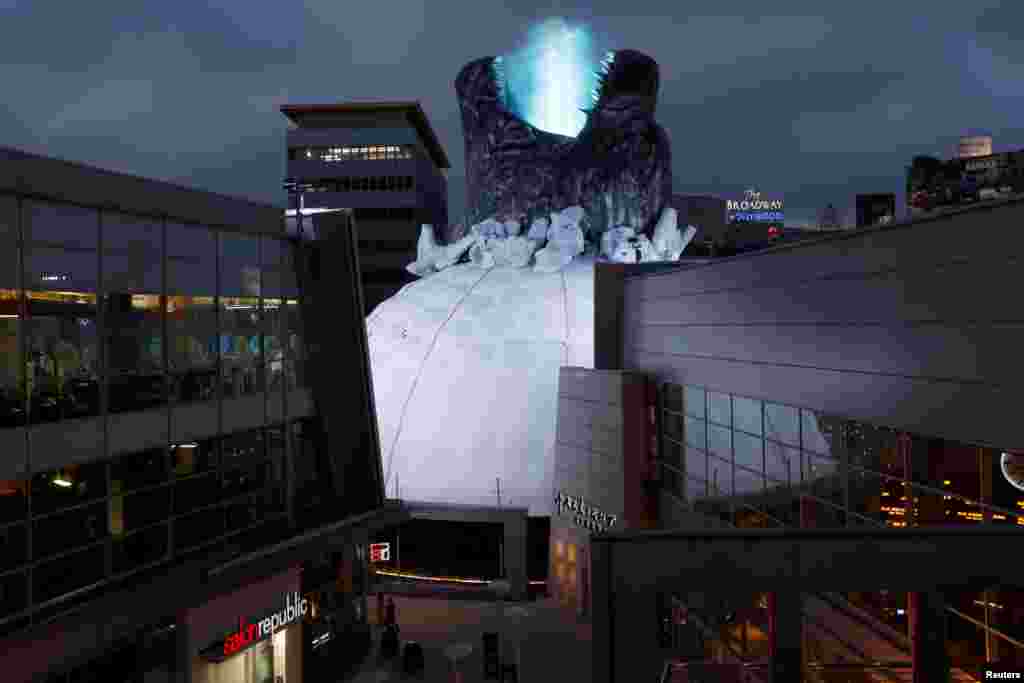 រូបមួយដែលគេដាក់ដើម្បីផ្សព្វផ្សាយរឿង«Godzilla: King of the Monsters» ត្រូវបានគេថតនៅលើដំបូលរោងភាពយន្ត ក្នុងទីក្រុង Los Angeles រដ្ឋកាលីហ្វ័រញ៉ាកាលពីថ្ងៃទី០៣ ខែមិថុនា ឆ្នាំ២០១៩។