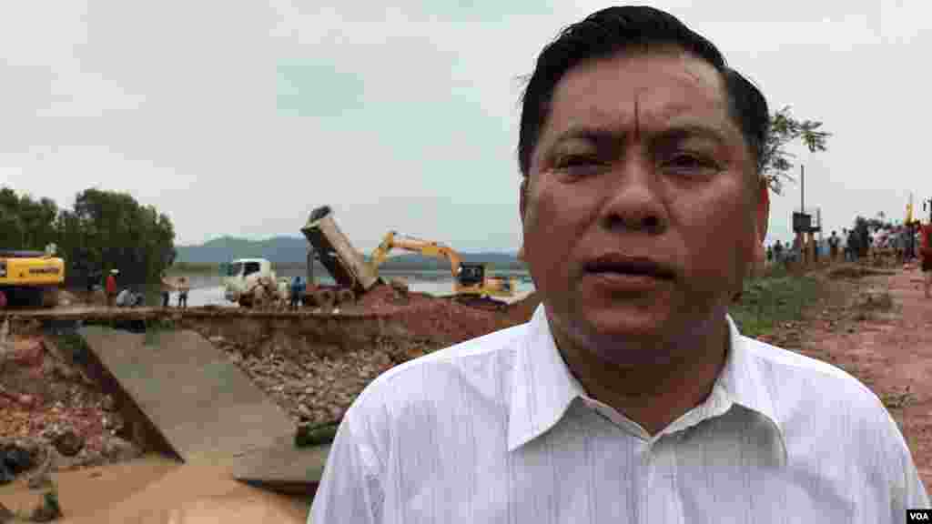 យន់ ផល្លី អ្នកសម្របសម្រួលរបស់សមាគមការពារសិទ្ធិមនុស្សអាដហុកក្នុងខេត្តកំពតថ្លែងអំពីការបាក់ស្រុតទំនប់អាងទឹកក្នុងស្រុកទឹកឈូ ថ្ងៃទី១២ ខែសីហា ឆ្នាំ២០១៩។ (ហ៊ុល រស្មី/VOA)
